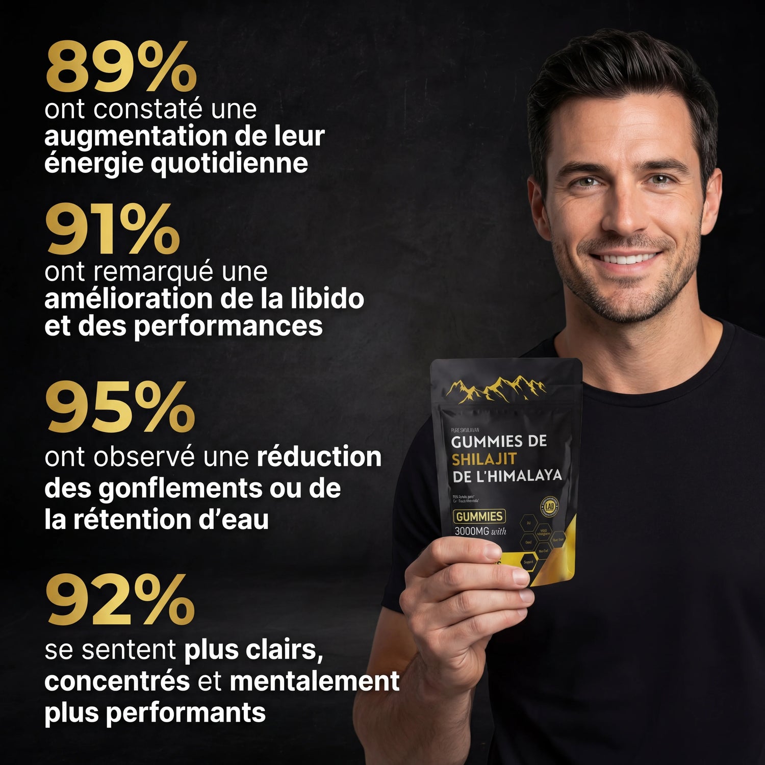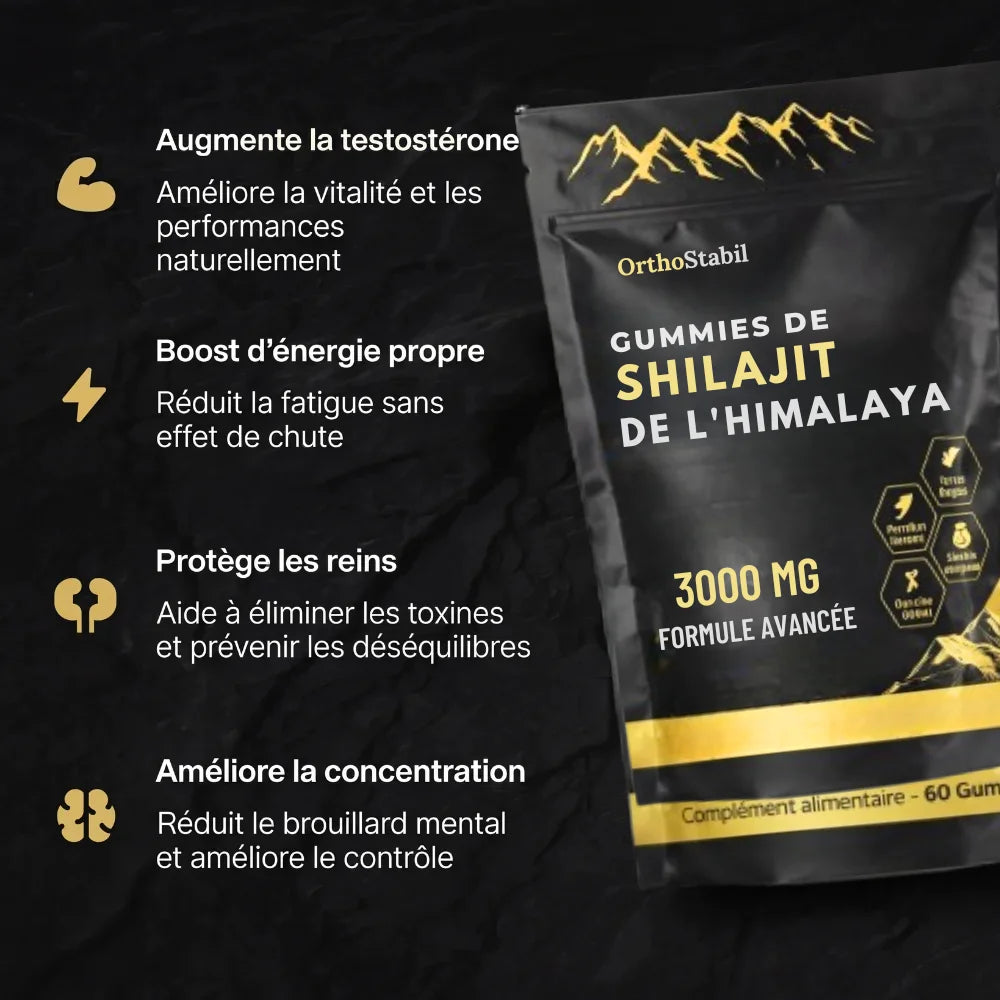 Gummies à base de shilajit conçues pour soutenir la testostérone, favoriser la santé rénale et raviver votre libido.